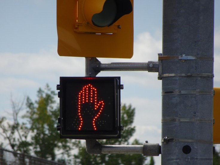 Po cestě si uvědomujeme dvě zásadní věci. V prvé řadě tady je všechno dost daleko… Je tady místa dost a tak neni důvod s nim šetřit. Silnice jsou široký, mezi barákama jsou vzrostlý stromy a často něco jako parčíky. Než se naše nohy doplahočí do vzdálenýho obchoďáku, stíháme dělat ještě druhý pozorování – na chodníku jsme jednoznačně sami. Chodníky (asi 1 metr široký a betonový) tady využíváme snad jenom my, ostatní se vezou autem. Další pozorování je fakt, že semafory nevydávaj žádnej zvuk a tedy nejsou vhodný pro slepce. Zároveň používaj červenou ruku pro „stop“ a bílýho paňáka pro „volno“ a světelnej semafórek čast nenajdete přímo nad přechodem ale musíte chvíli hledat okolo po blízkejc sloupech. Co mi zatim hlava vůbec nebere sou čudlíky pro chodce, kde niky nevíte, na jakej z blízkejch dvou přechodů funguje, nicméně zatim sme se na druhou stranu vždycky dostali.